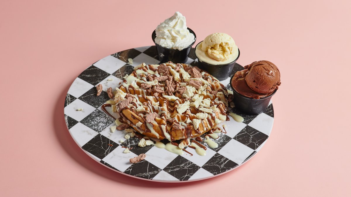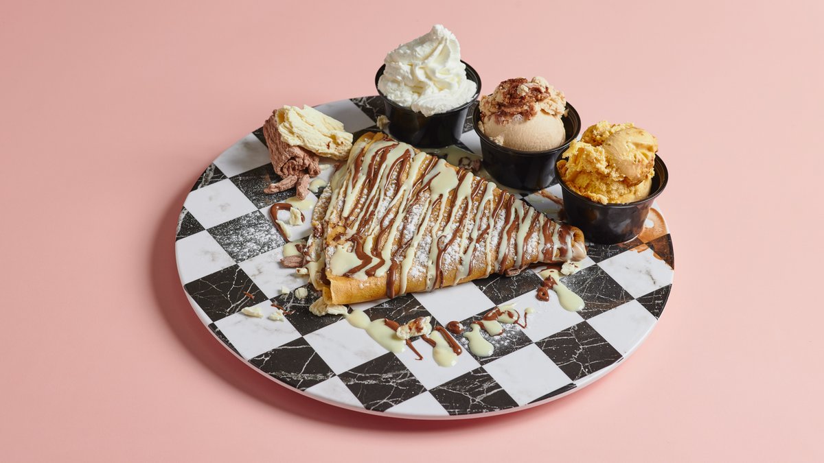 בחרו שני רטבים ו-2 תוספות | מוגש עם כדור גלידה וכדור קצפת