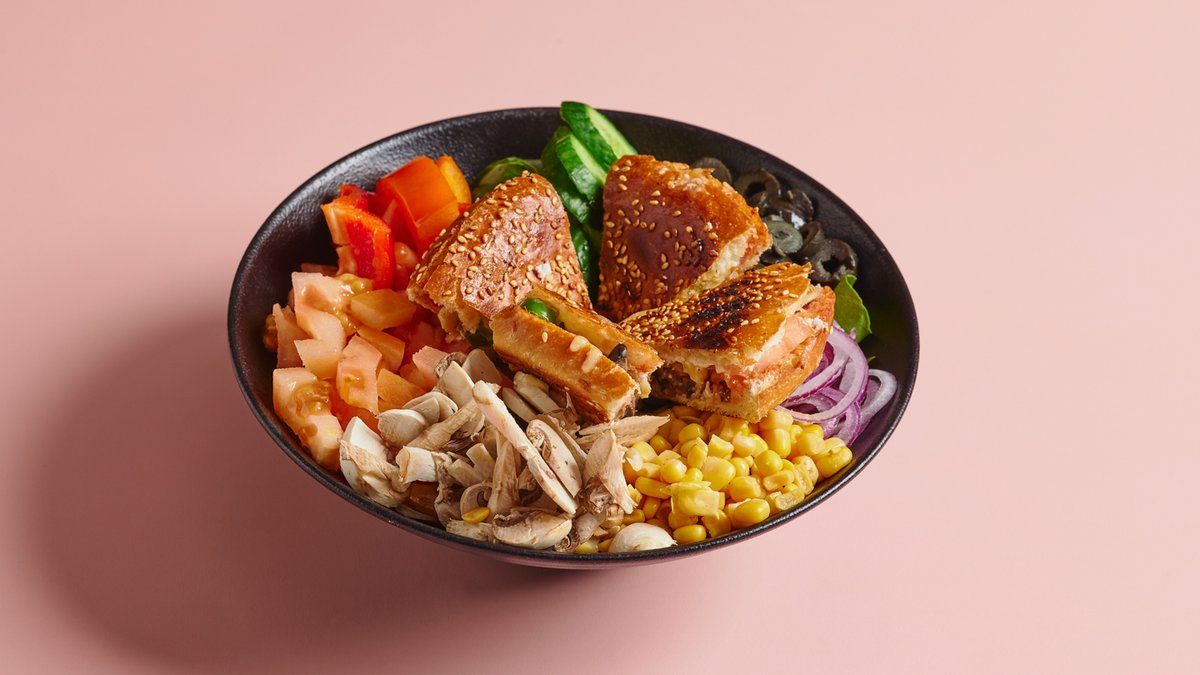 בחרו לחם ותוספות | מוגש עם ירקות ו-3 רטבים לבחירה