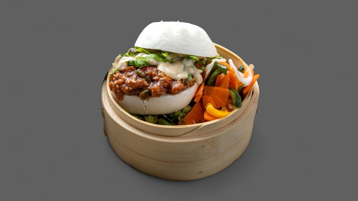 בשר טחון על בסיס רכיבים צמחיים, ויניגרט טחינה, סילאן מתקתק וחסה בלחמנית באן
