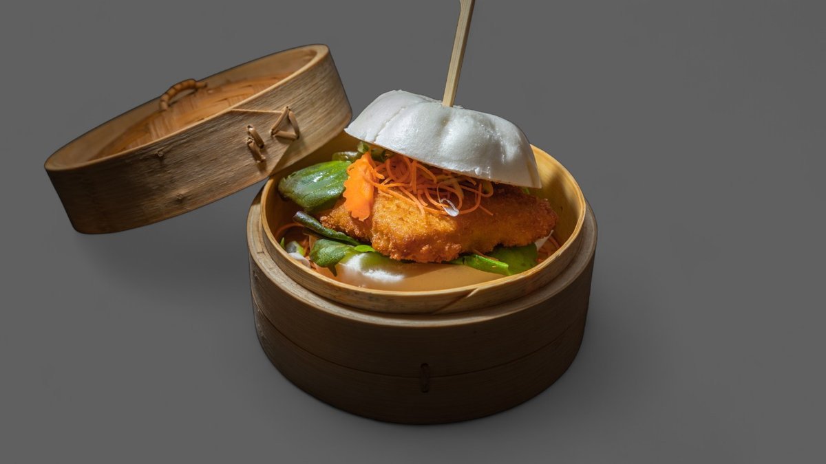 באן שניצל מגיע עם חסה ורוטב איולי בזיליקום.