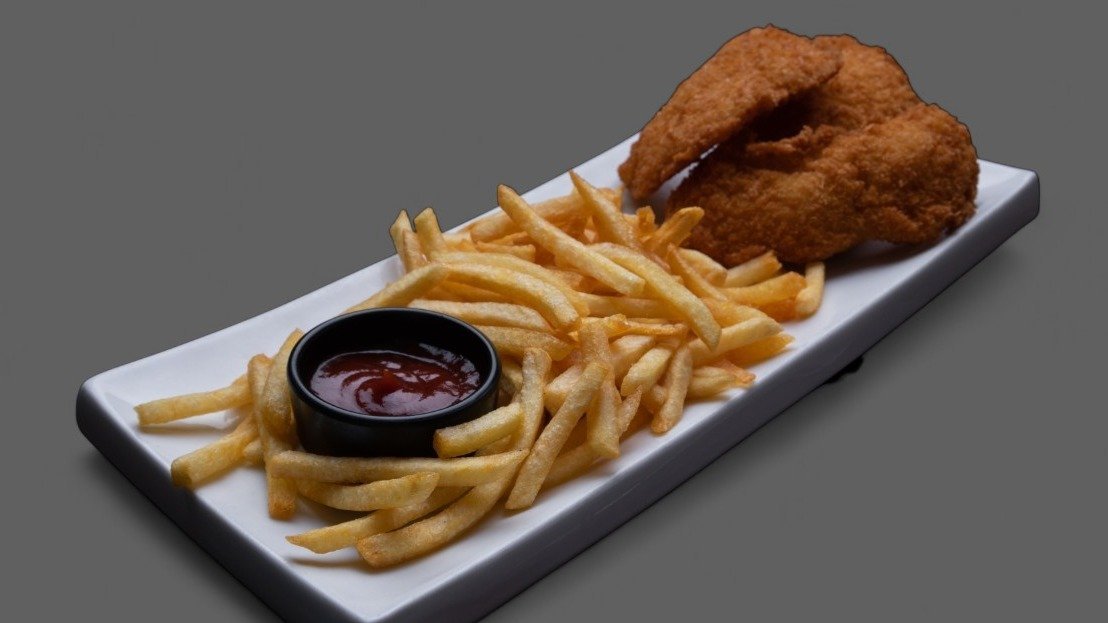 שניצלונים מחזה עוף אמיתי מוגש עם צ'יפס