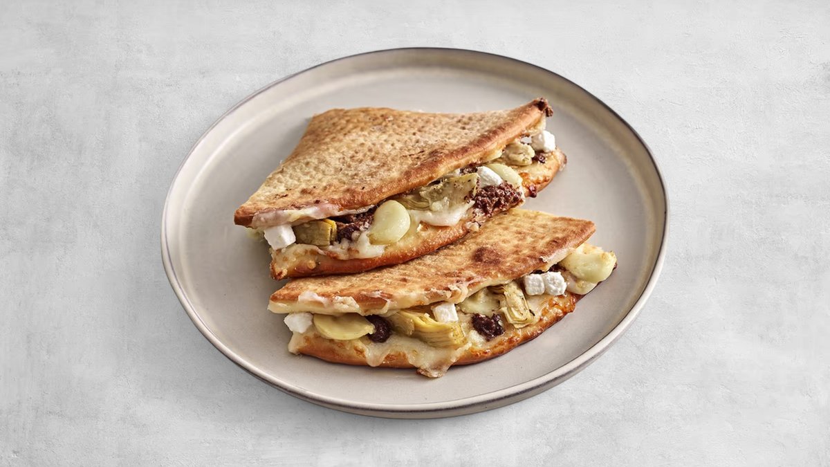 בצק טרי קריספי במילוי רוטב ראנץ׳ המקורי מארה״ב, טפנד זיתי קלמטה, חתיכות ארטישוק, בולגרית, שום קונפי ותערובת של 5 גבינות איטלקיות מיוחדות ומוצרלה איכותית.