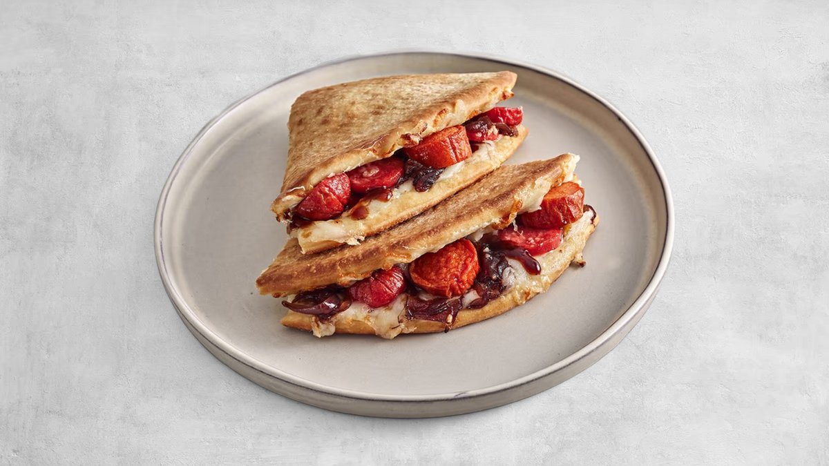בצק טרי קריספי במילוי רוטב ראנץ׳ המקורי מארה״ב, ריבת בצל מקורמל, נקניקיית עוף איכותית, נקניקיית בקר עסיסית ומעל - גבינת מוצרלה עשירה.