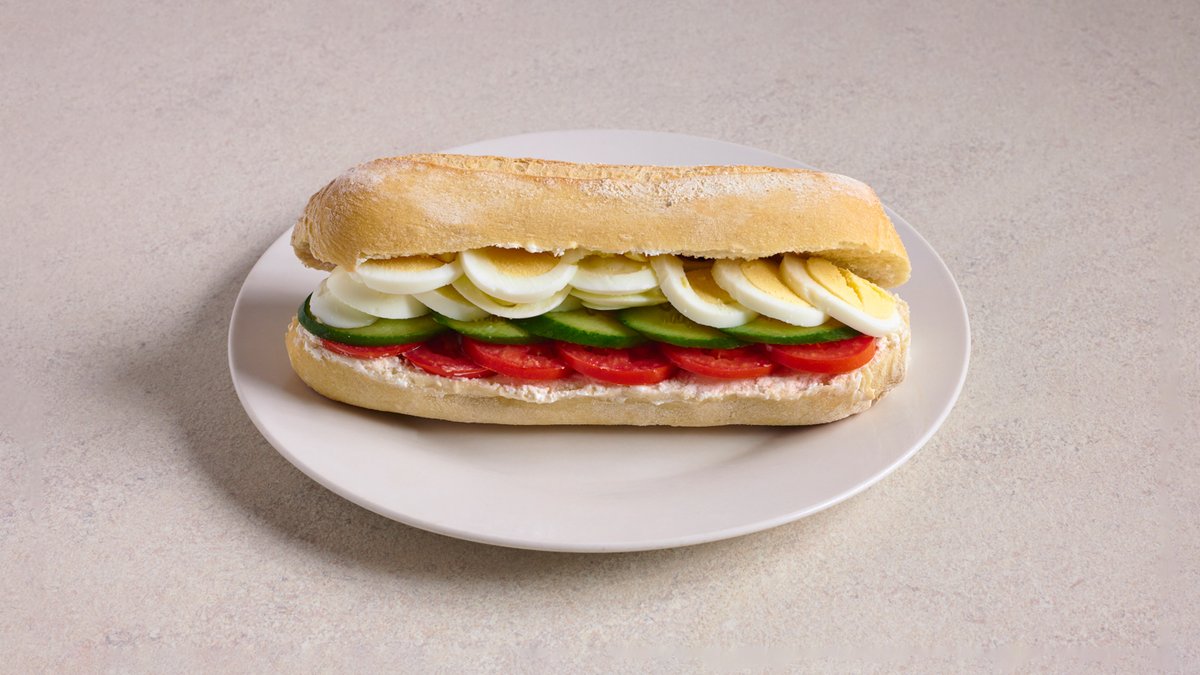 ג׳בטה לבחירה, 2 ביצים קשות, מיונז, עגבניה ומלפפון