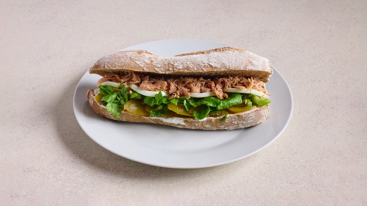 טונה, מיונז, חסה, מלפפון חמוץ, ביצה קשה, לימון סחוט