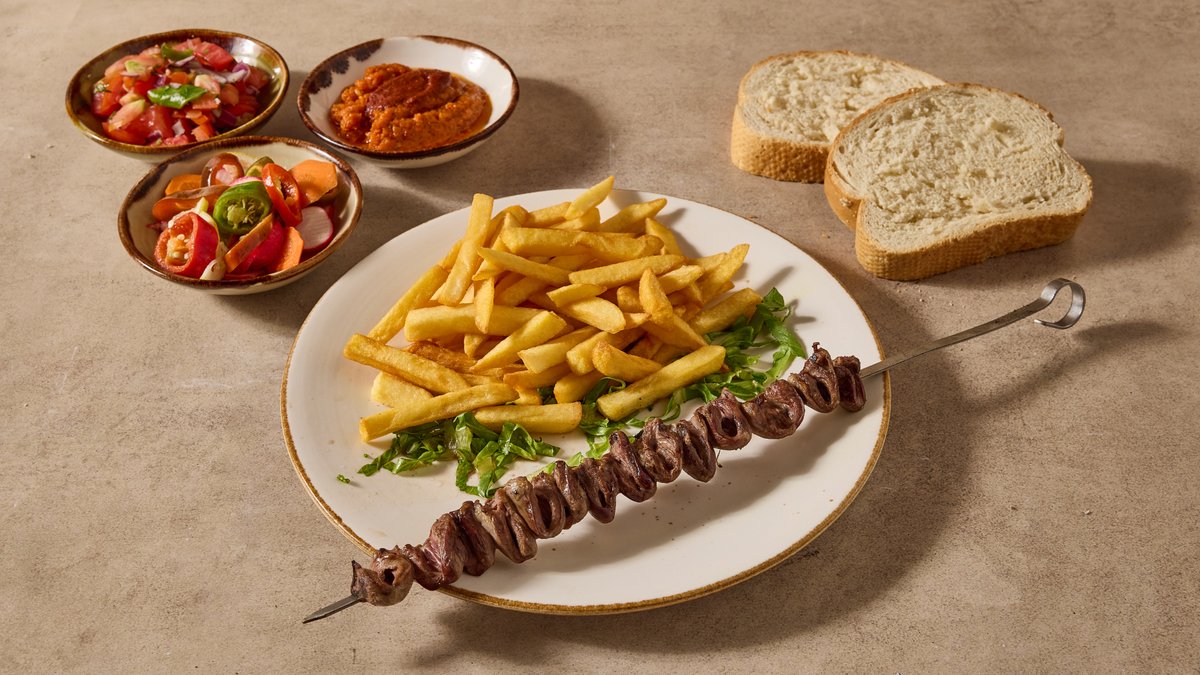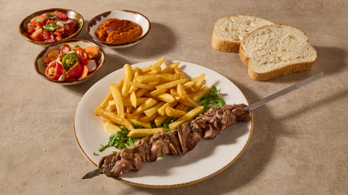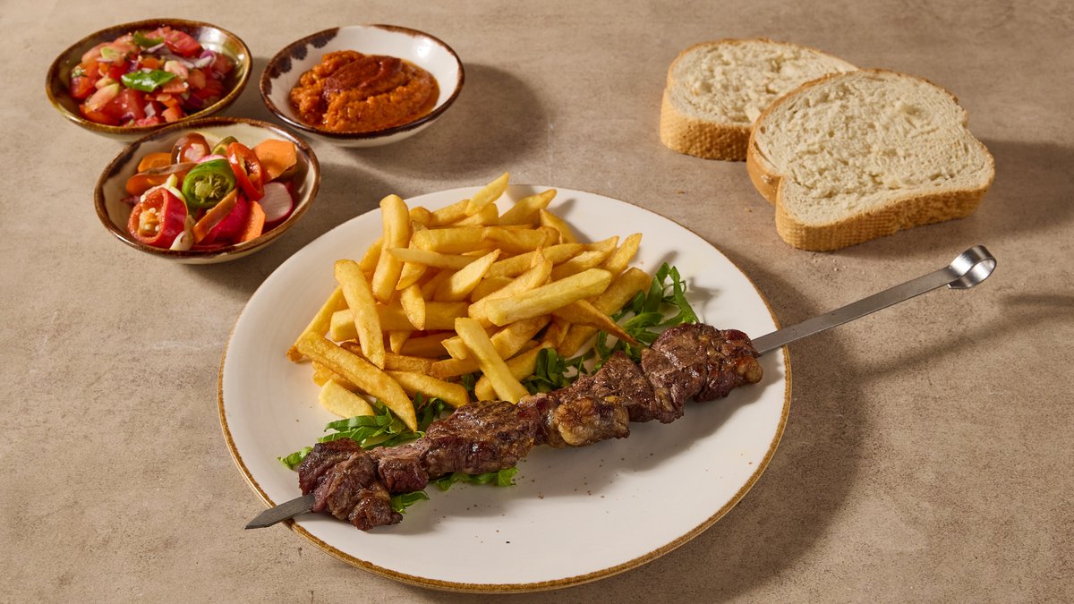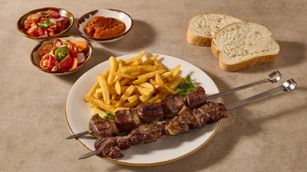 2 שיפודים פרימיום, תוספת, 4 סלטים ולחם | פיתה לבחירה