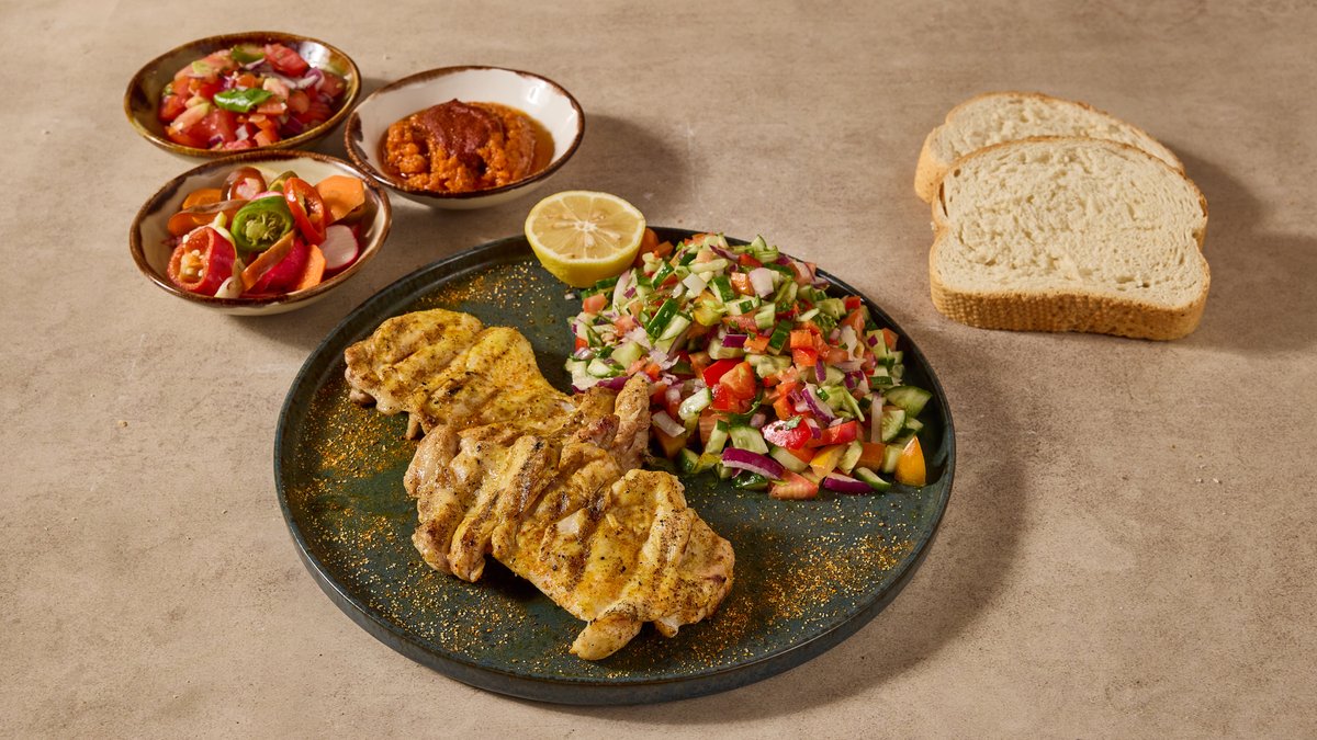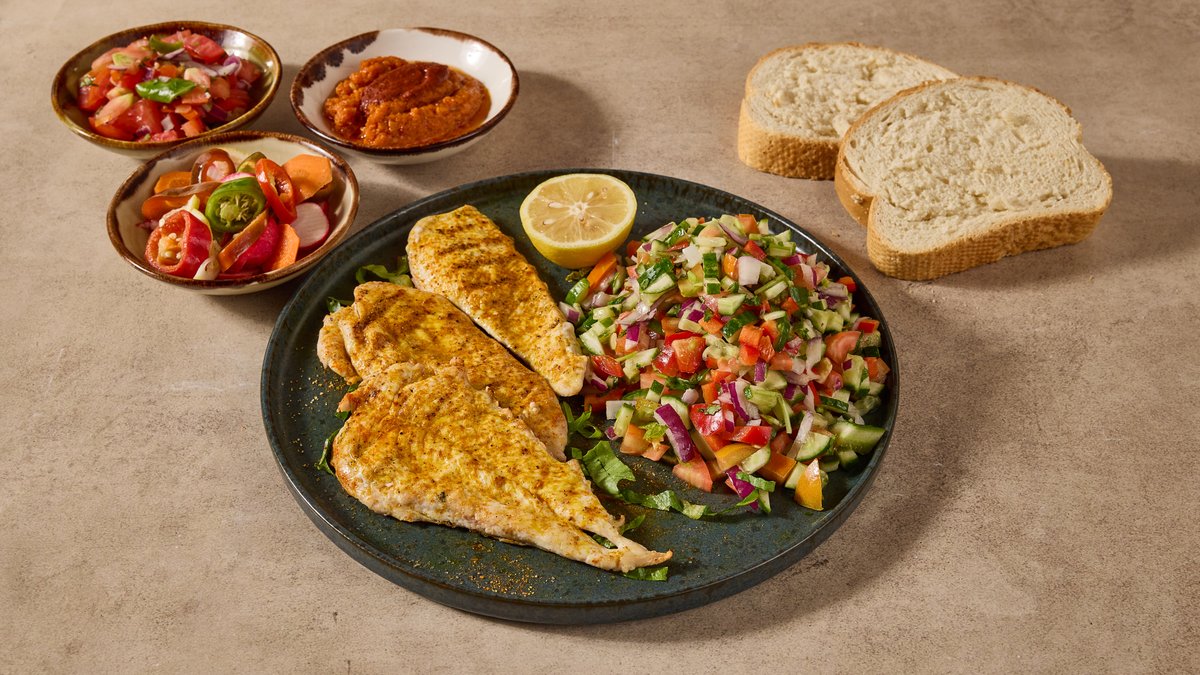מוגש עם לחם של פעם או פיתה ו-3 סלטים לבחירה