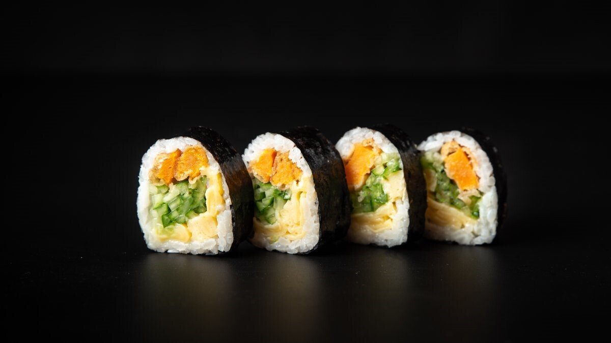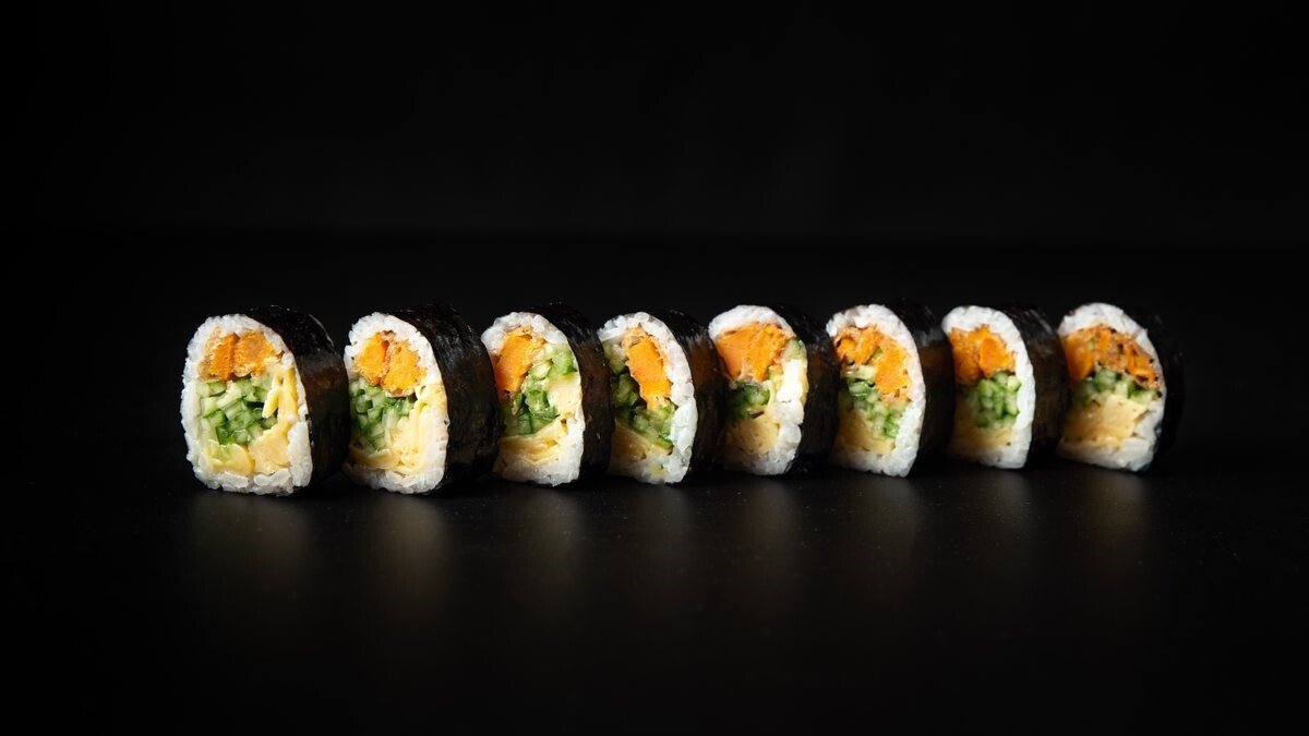 רול עבה עטוף באצת נורי, מחולק ל-8 יחידות. לבחירה דג ושני ירקות