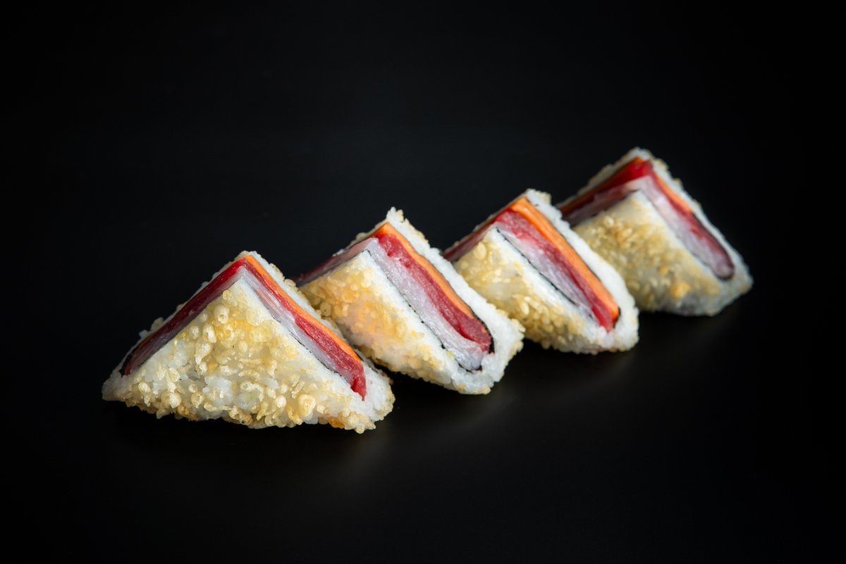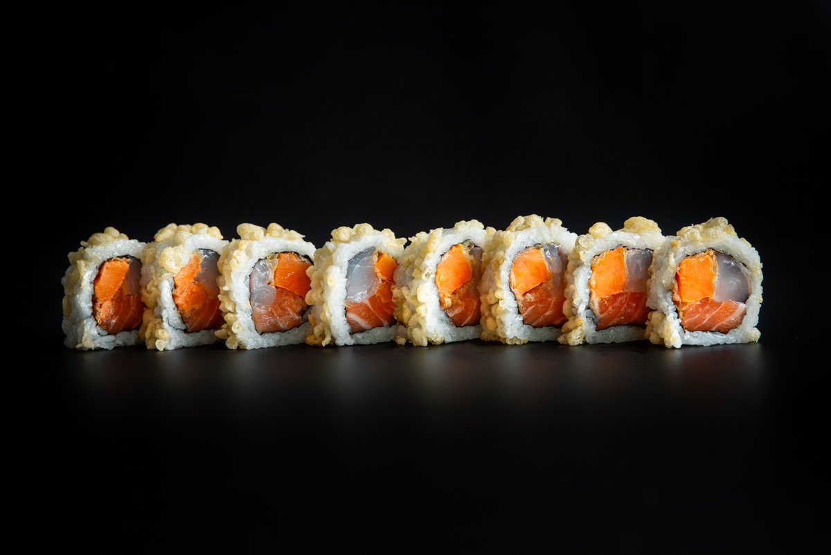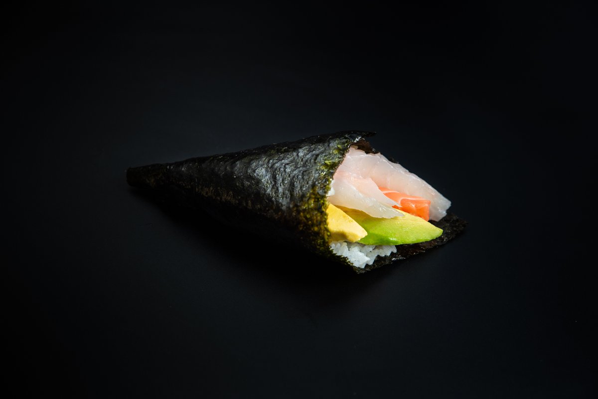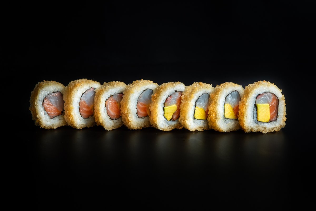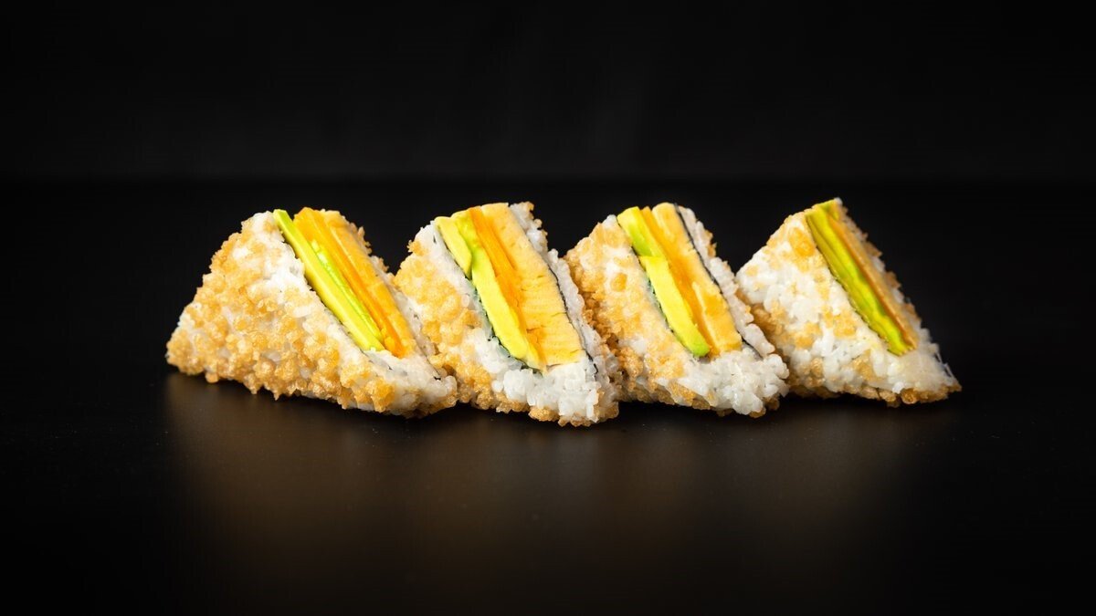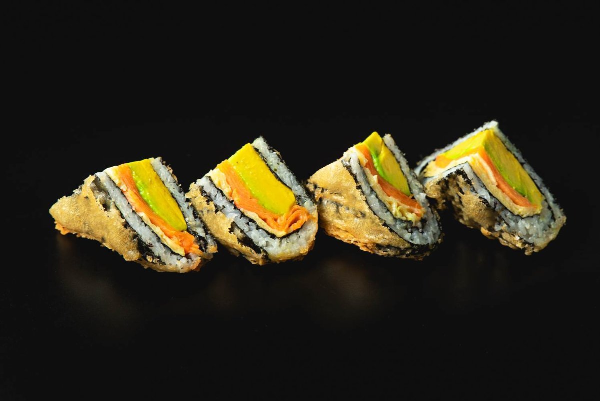 רול עבה מגולגל כאשר האצה בפנים והאורז בחוץ, בציפוי שבבי טמפורה, מחולק ל-8 יחידות. לבחירה דג ושני ירקות