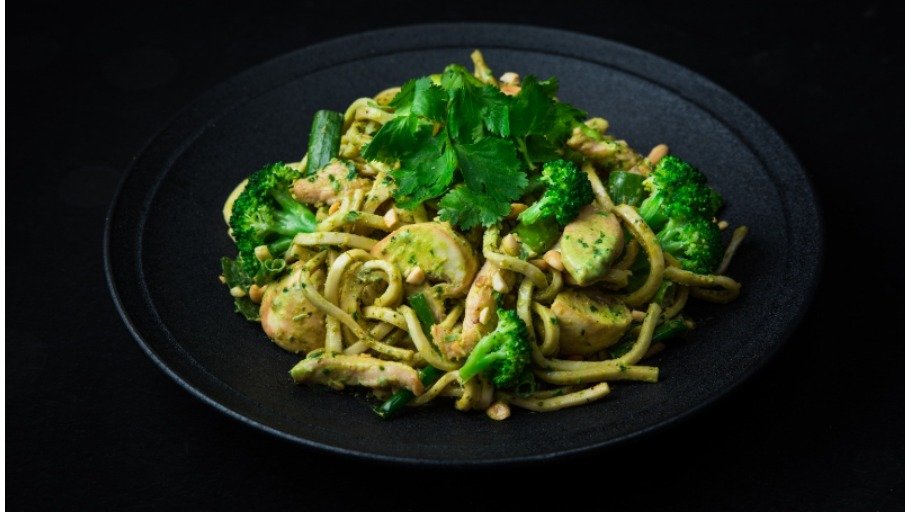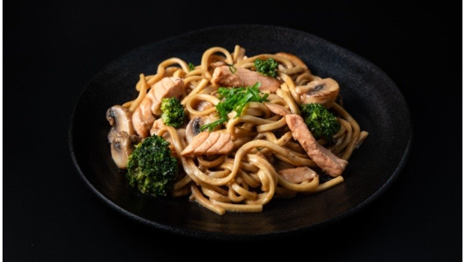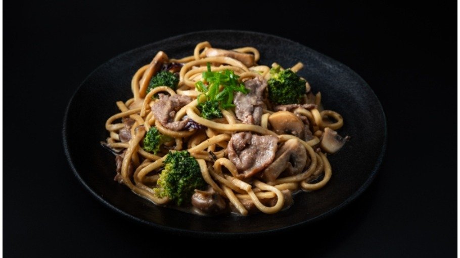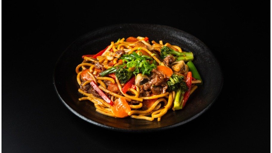 אטריות טריות מוקפצות בטריאקי עם רצועות עוף