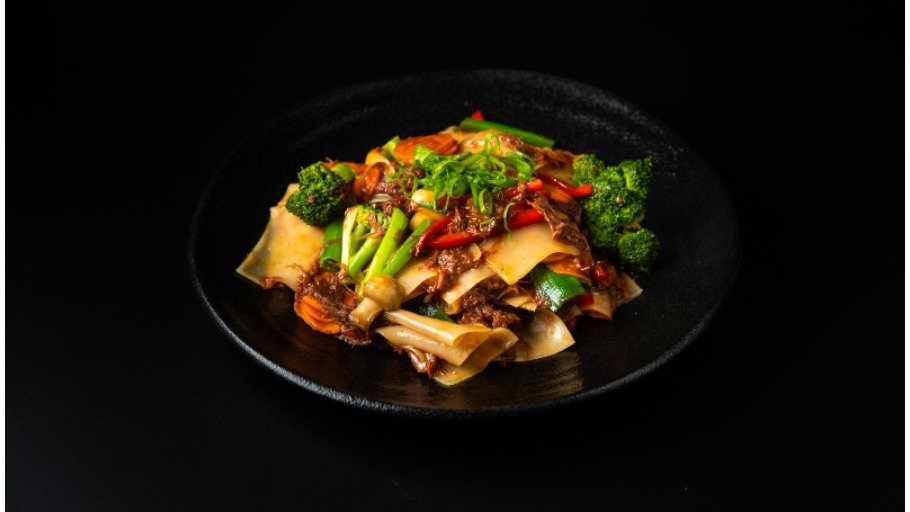 נתחי בקר בטמפורה מוקפצים ברוטב פיקנטי עם חלב קוקוס, צ'ילי ותמרינדי, גזר, ברוקולי, בצל סגול, פלפל אדום, קולורבי, בצל ירוק, עלי תרד ופטריות. מוגש עם אורז מאודה. מכיל גלוטן