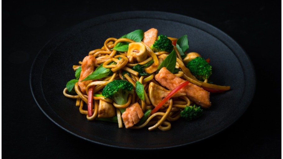 אטריות טריות מוקפצות בטריאקי עם טופו