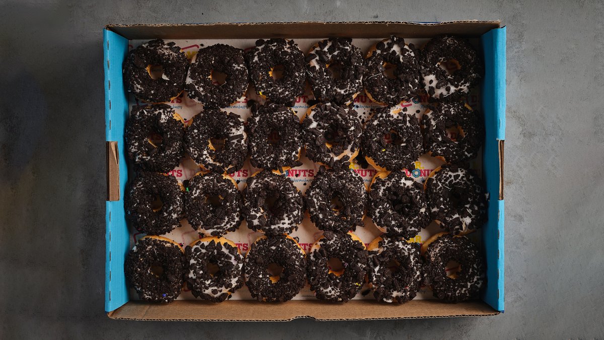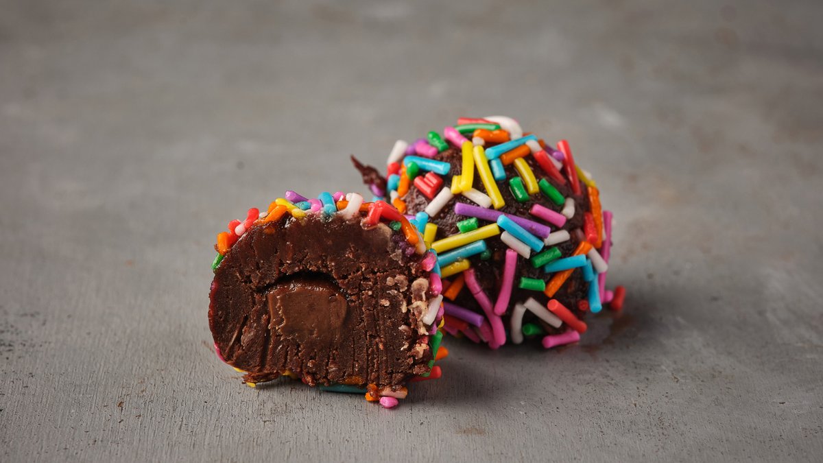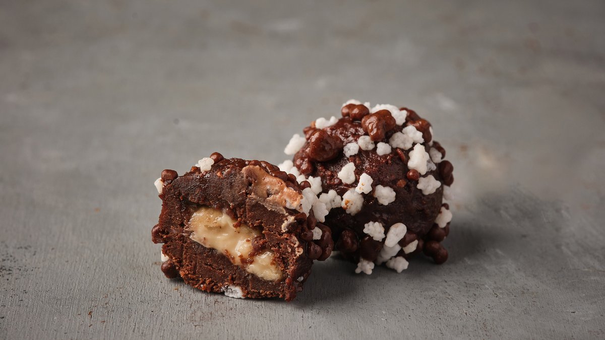 זוג כדורי שוקולד סוכריות במילוי קרם בייגלה מלוח