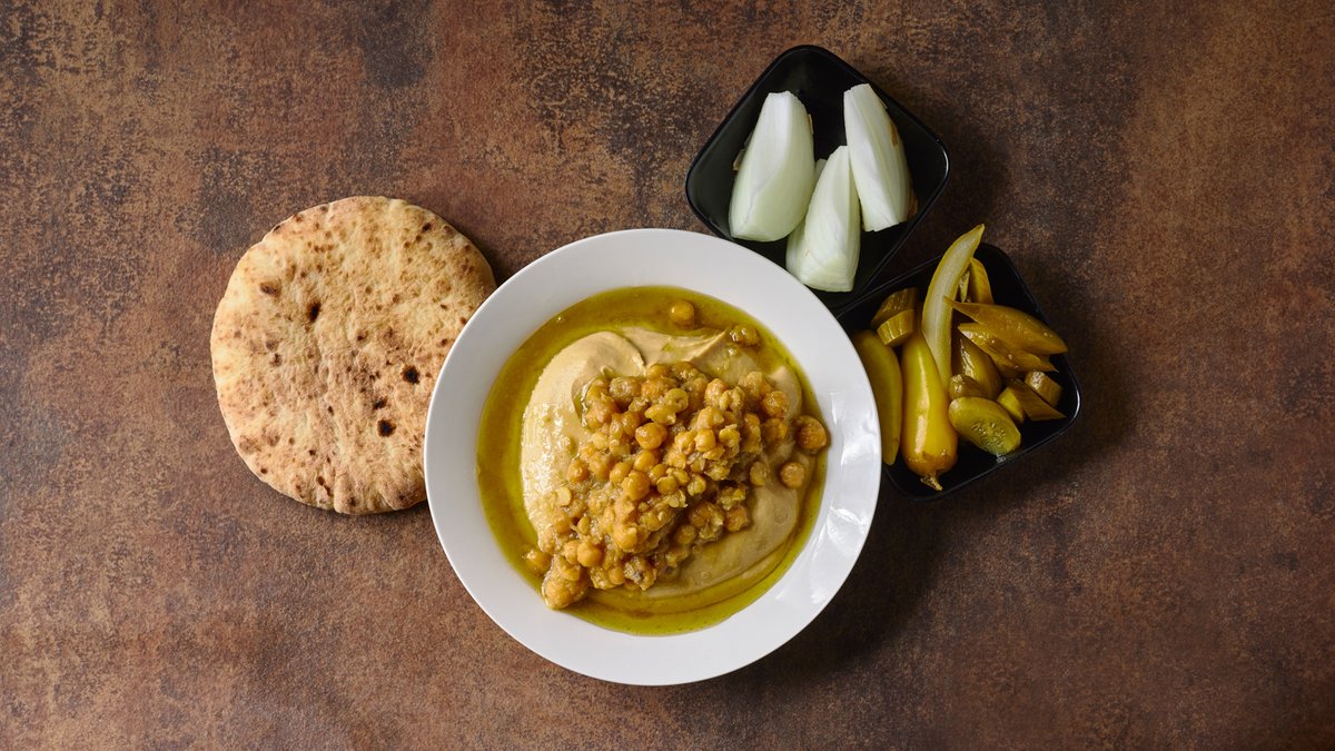 מוגש עם 2 פיתות וסלטים يقدم مع سلطات و 2 رغيف خبز
