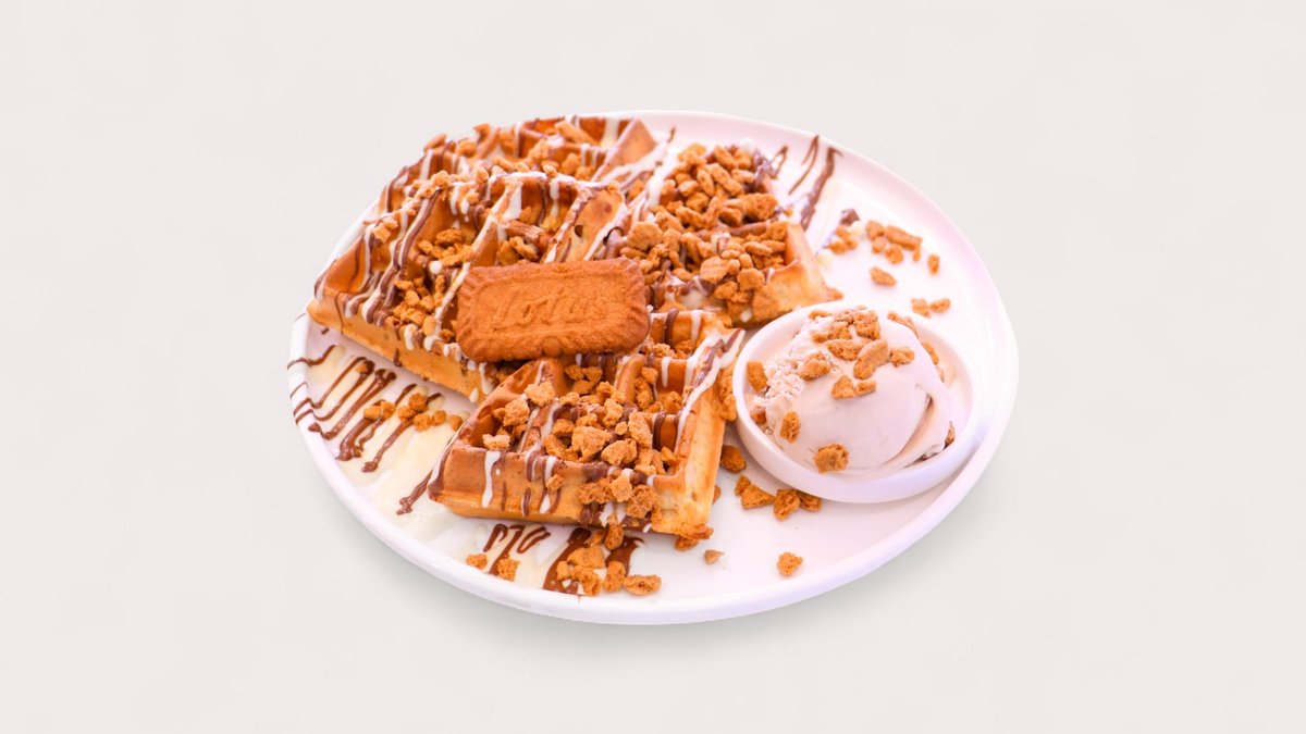 רוטב לוטוס, שוקולד לבן, ביסקוויט לוטוס, תוספות וכדור גלידה לבחירה