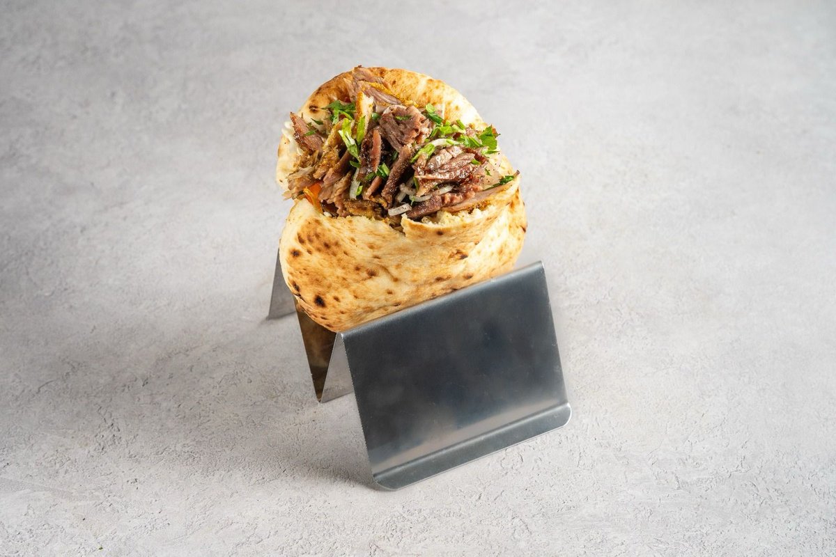 שווארמה עגל בפיתה עם סלטים וממרחים לבחירה