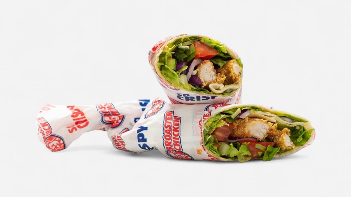 קריספי צ׳יקן בטורטיה , חסה, בצל סגול, מלפפון חמוץ ועגבנייה + תוספת לבחירה