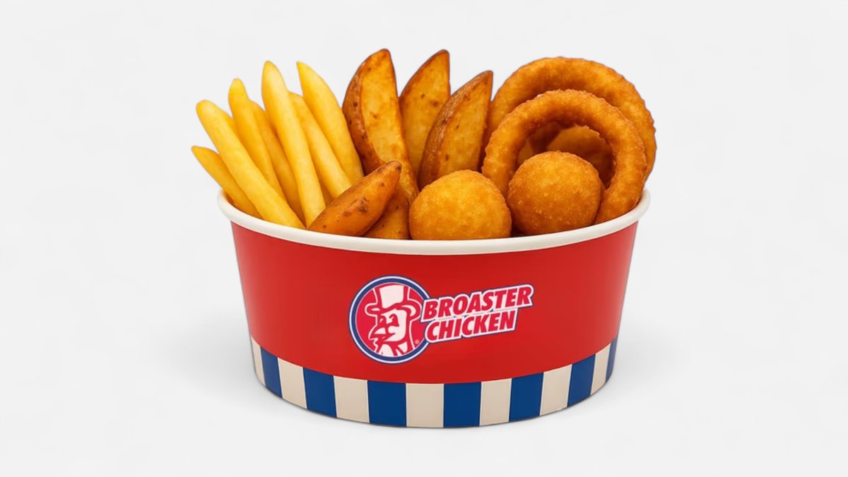 טבעות בצל, צ׳יפס, כדורי פירה ופוטטוס