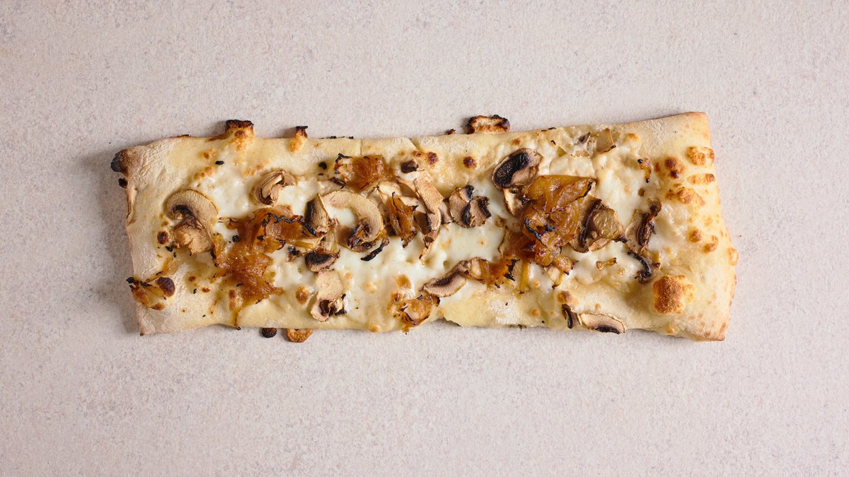קרם שמנת, מוצרלה טרייה, מיקס פטריות, בצל מקורמל ופרמזן