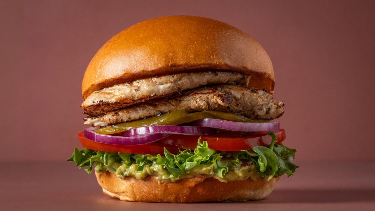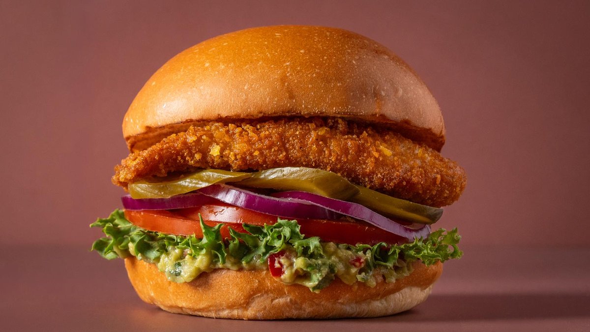 קריספי צ׳יקן עם גוואקמולי, חסה, עגבניה, חמוצים, בצל ורטבים לבחירה