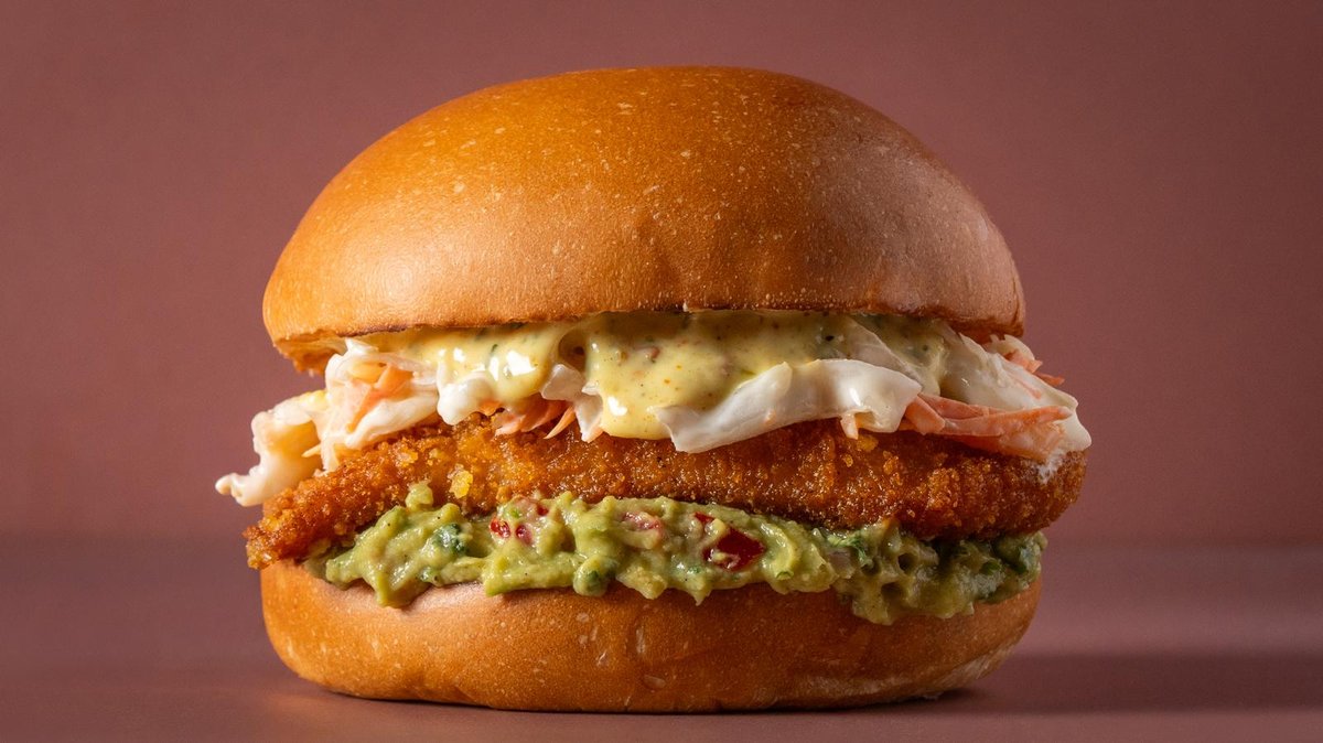 קריספי צ׳יקן עם גוואקמולי, איולי קארי וקולסלואו (ללא ירקות)