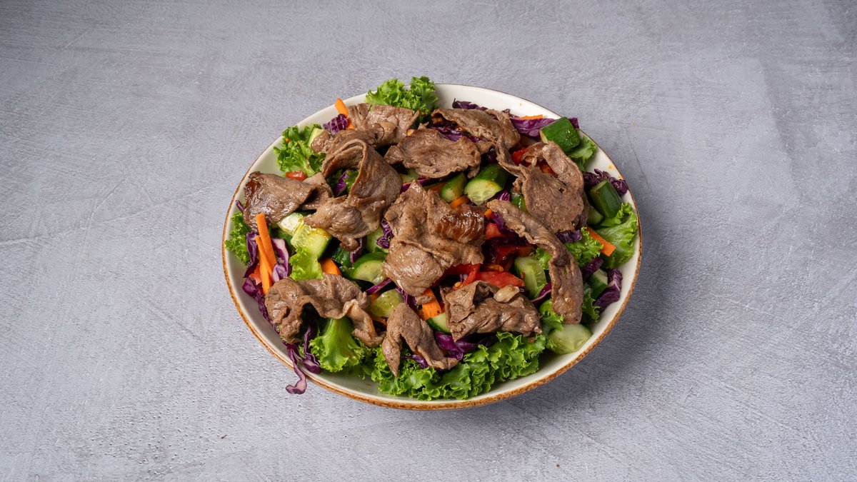 חסה לאליק, עגבנייה, מלפפון ירוק, כרוב סגול וגזר מוגש עם 2 רטבים לבחירה