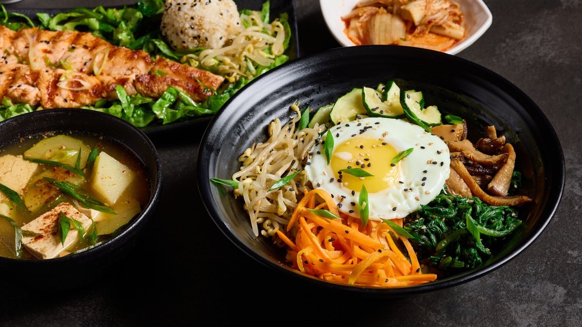 קערת אורז מאודה עם מבחר ירקות מבושלים ועסיסיים, ביצה מטוגנת ורוטב KOKO גוֹצ'וּגַ'אנְג (הרוטב מוגש בנפרד) החריפות מגיעה מהרוטב 🌶️