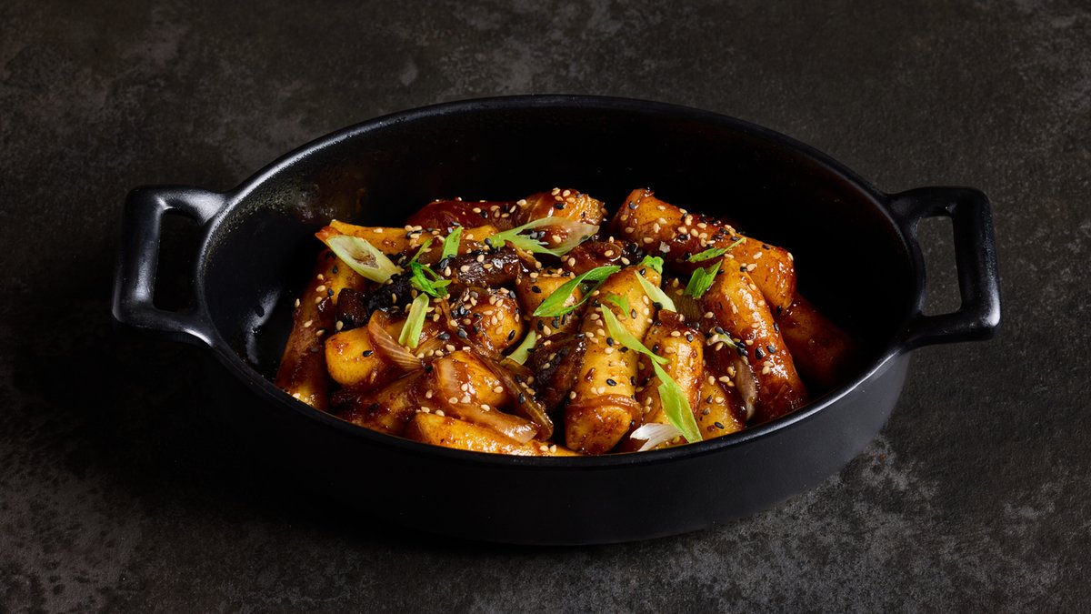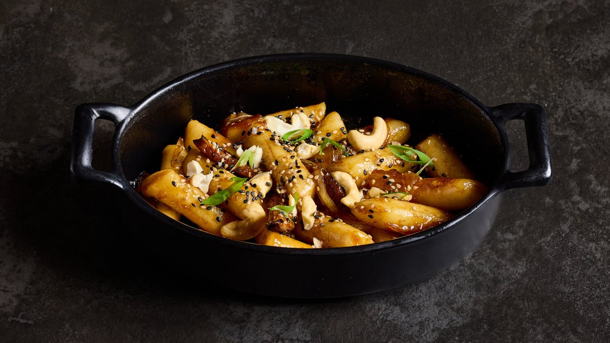 עוגות אורז קוריאניות מסורתיות עבות ורכות מבית KOKO, ברוטב תמרים וסויה