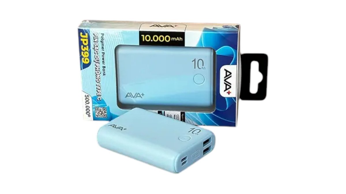 AVA+ 10000 mAh BATTERY BANK FAST CHARGING TYPE C AND USB TYPE A BLUE