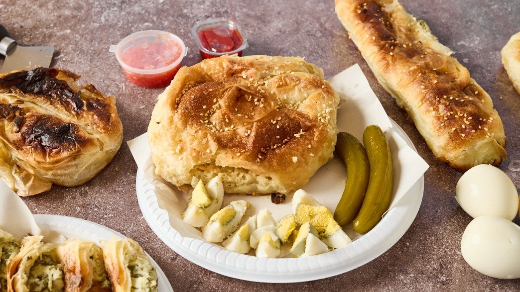 Freshly baked, crispy puff pastry burekas – filled your way. Kosher