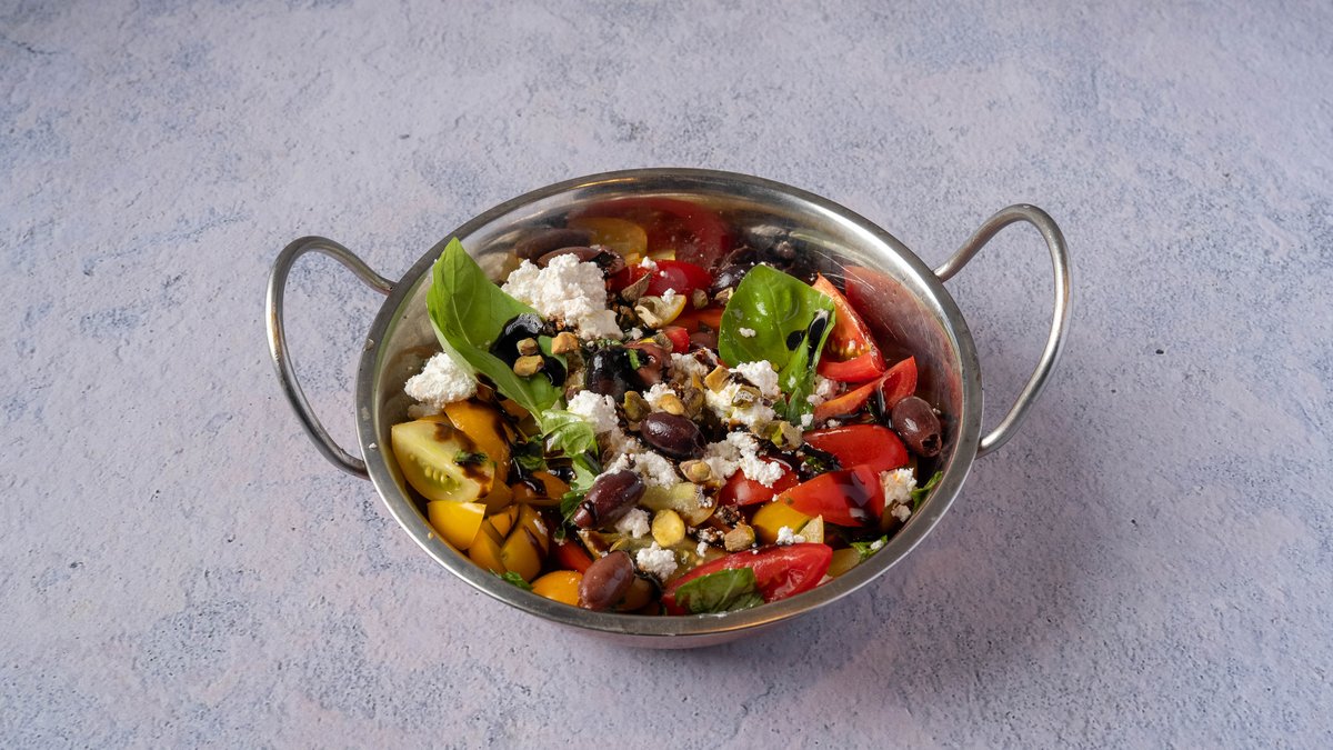 עגבניות שרי, בזיליקום, בלסמי מצומצם ובייבי מוצרלה