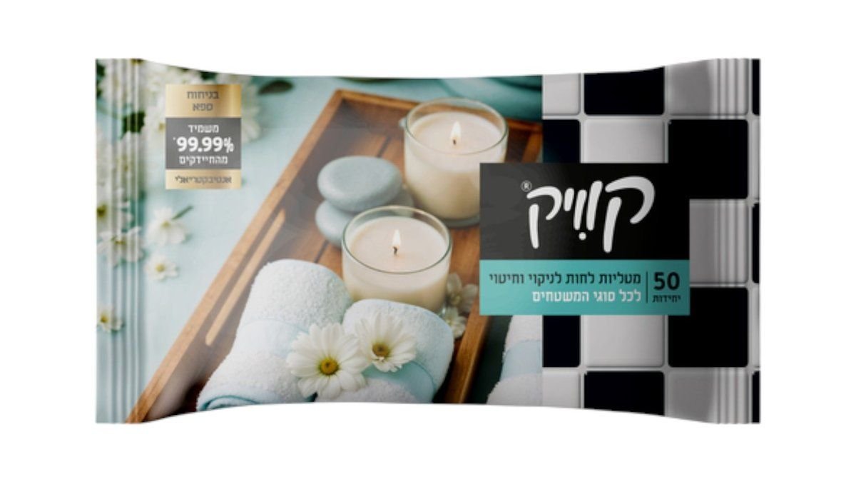 50 מטליות לחות לניקוי וחיטוי משטחים (משמיד 99.9% מהחיידקים)