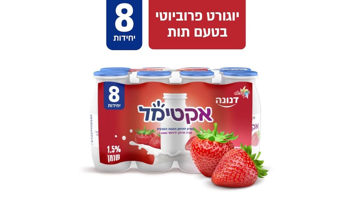 אקטימל משקה יוגורט פרוביוטי בטעם תות - 8 יח׳