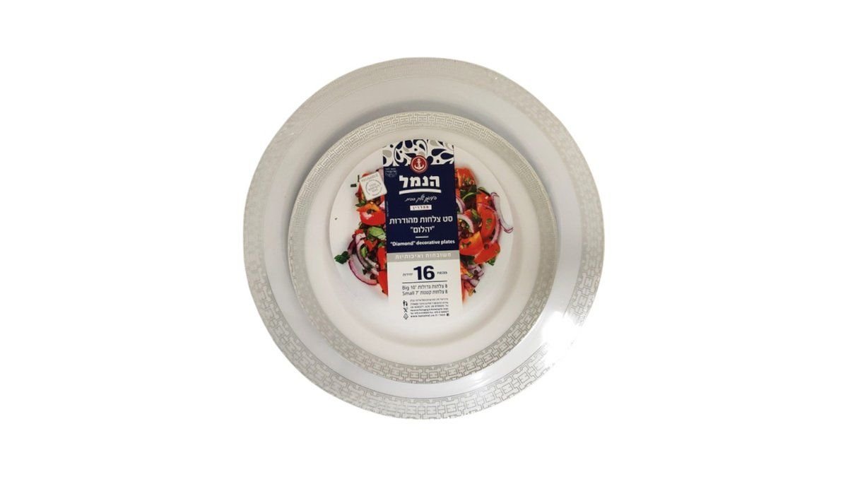 סט צלחות יהלום כסף 8 ענק +8קטן