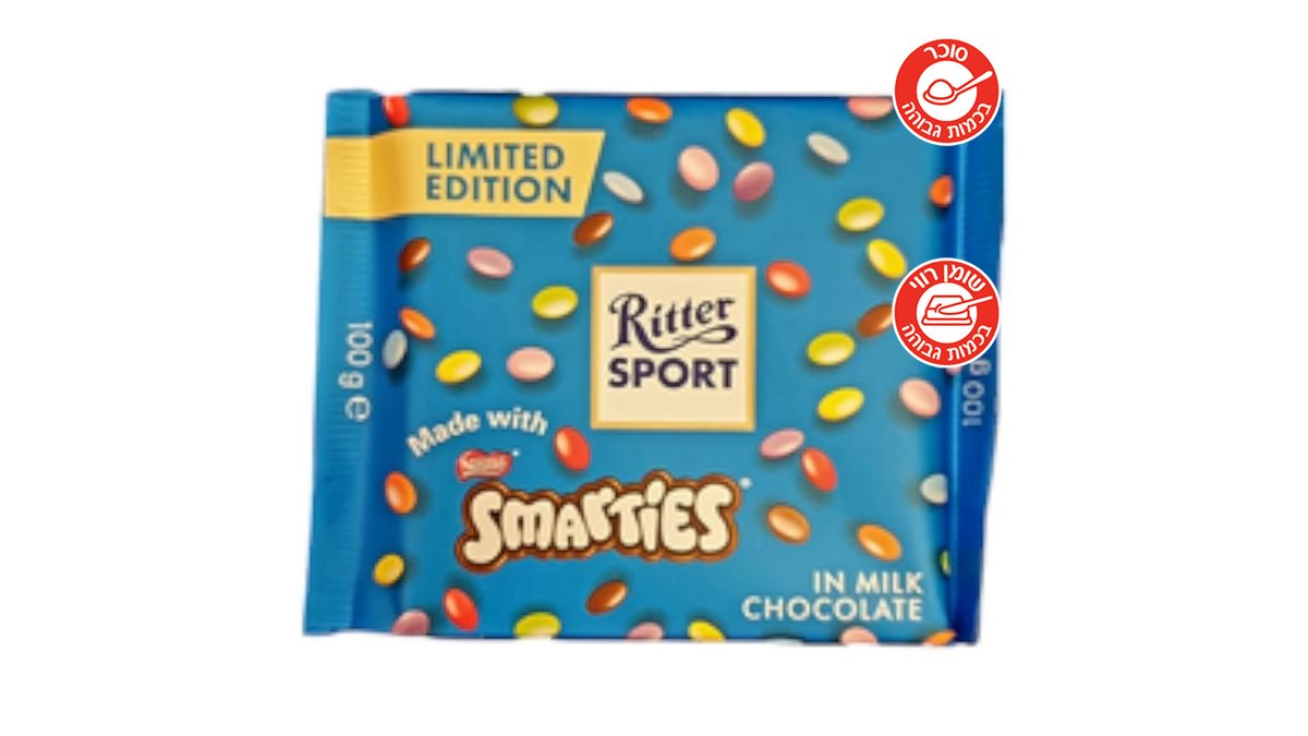 שוקולד חלב מעולה עם מצופים סוכר צבעוני 100 גרם ריטר