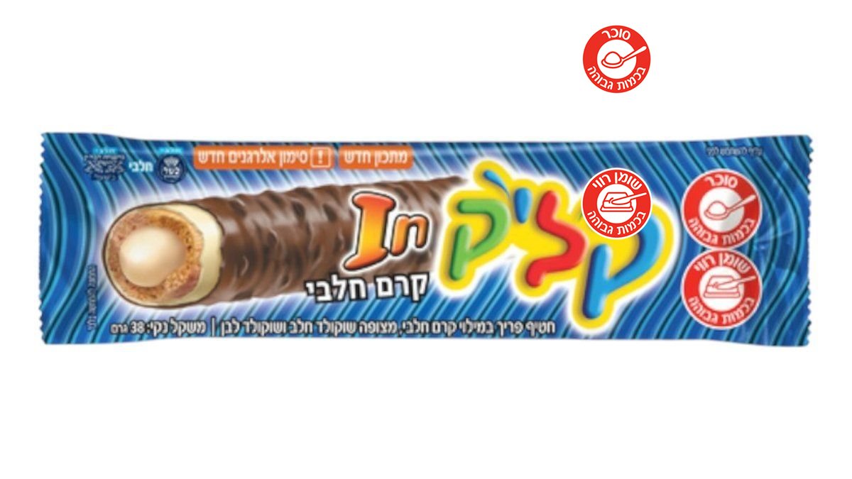 שוקולד חלב מעולה במילוי קרם אגוזים ושברי גלילי וופל
