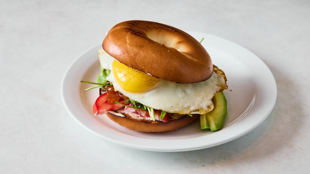 שתי פרוסות לחם קלוי, אבוקדו, עגבניות שרי וביצי עין