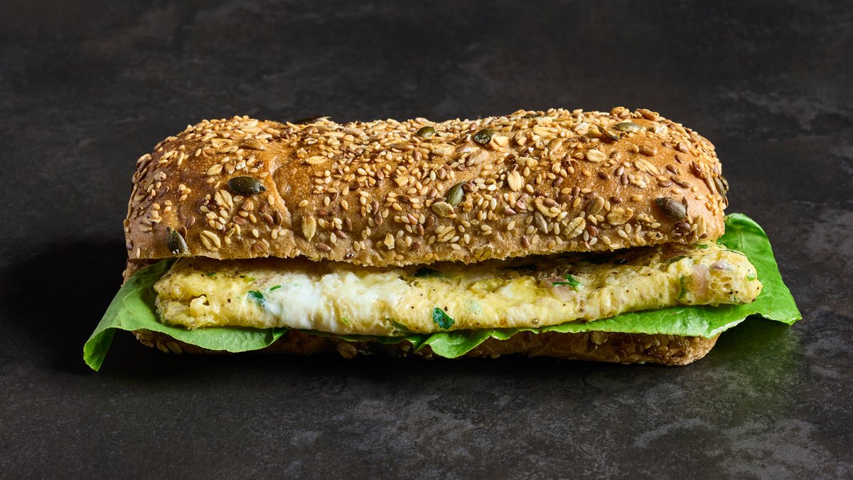 חביתה, גבינת שמנת, עגבניה, מלפפון חמוץ וחסה