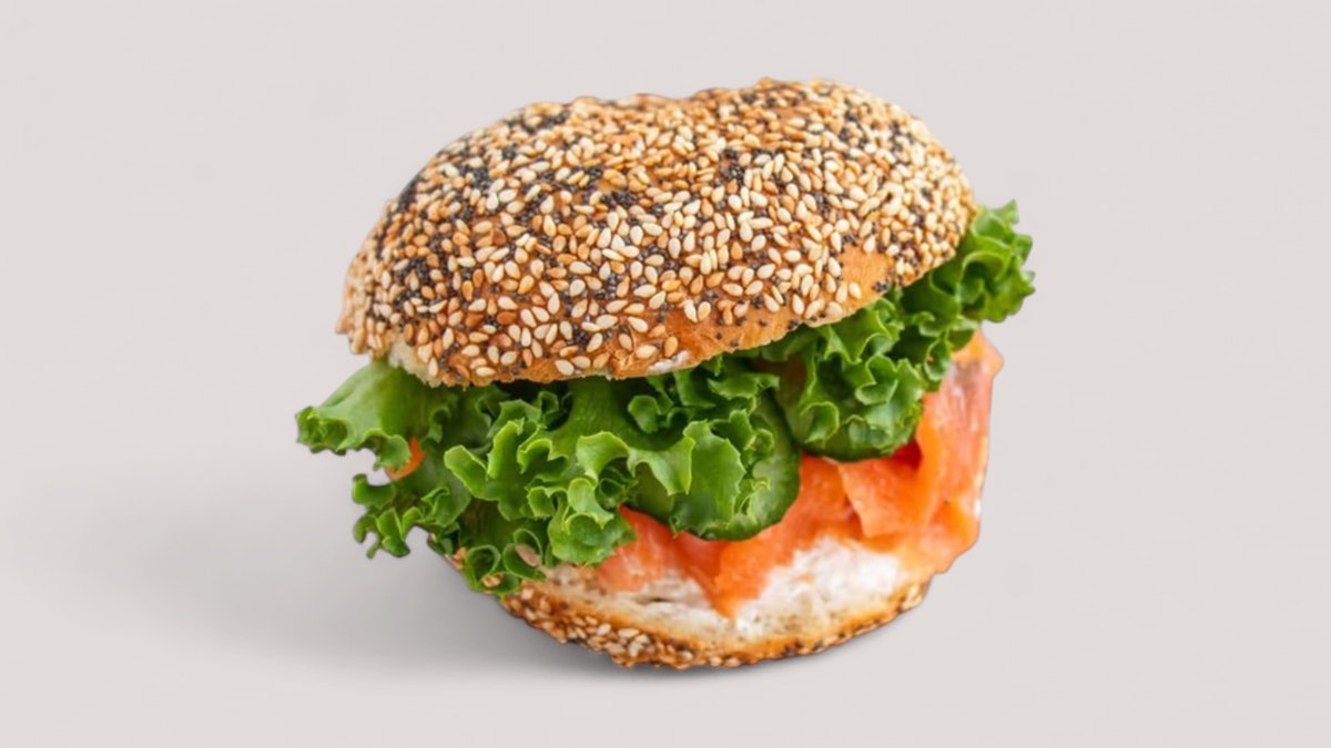 בייגל ירושלמי עבודת יד, סלמון בכבישה עדינה, גבינת שמנת, מלפפון, לאליק