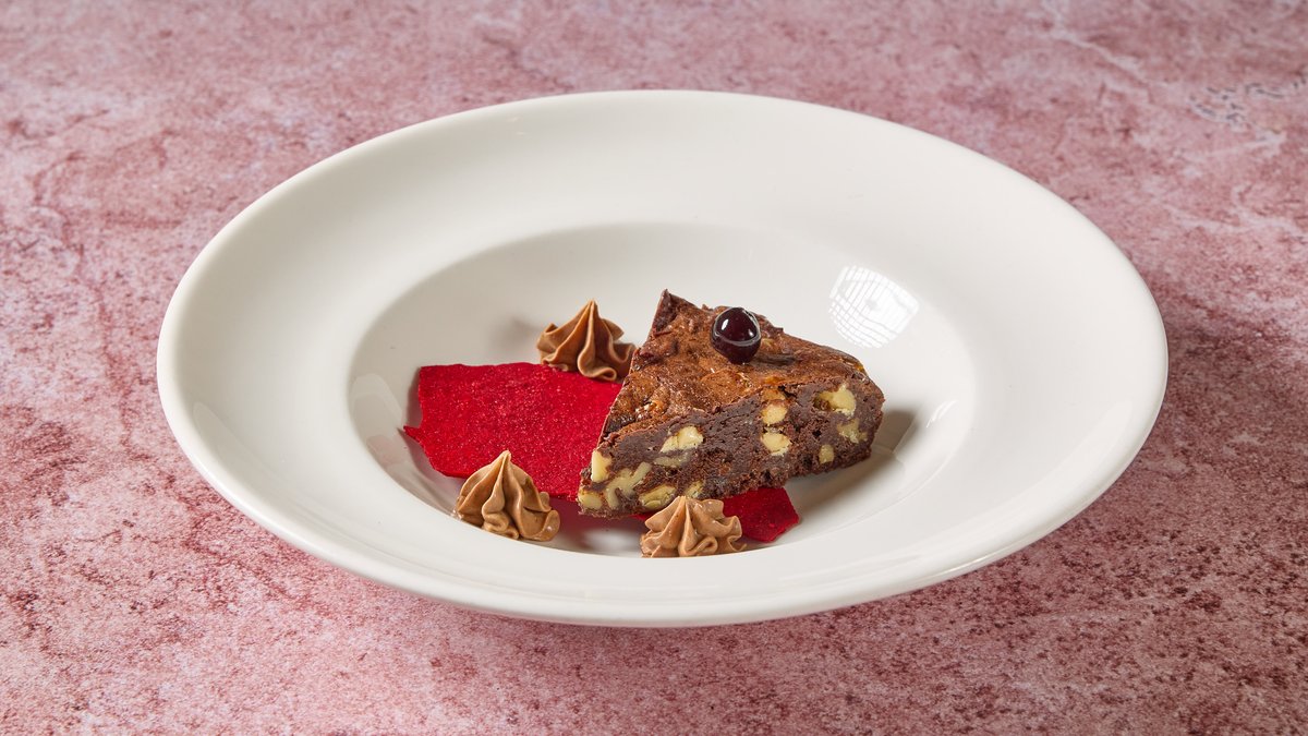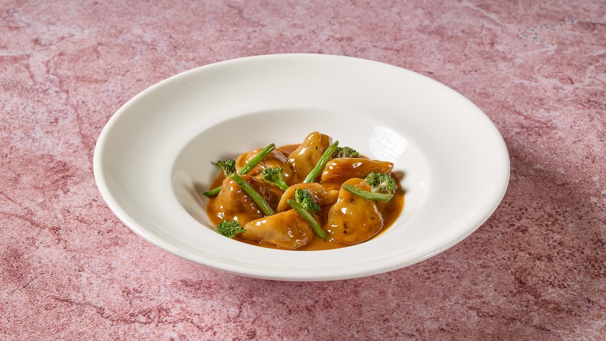 קנלוני במילוי אסאדו מפורק, ירקות שורש, רוטב שמנת קרמל וברוקולי