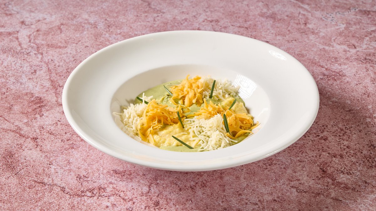 פולנטת תירס טרי, אפונת שלג, שמן כמהין ופרמז׳ן