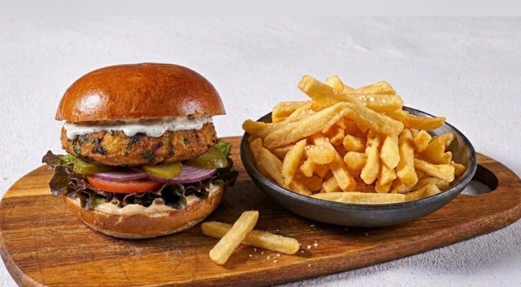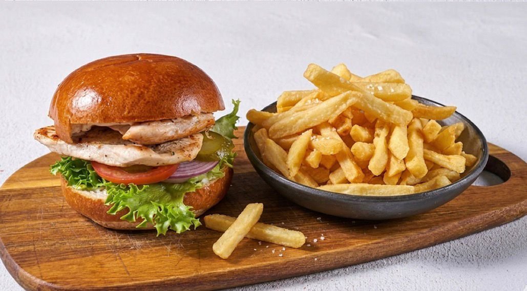 צ׳יקן בורגר פרוטאין עם צ'יפס