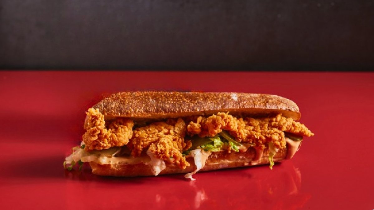 חזה עוף קריספי, חסה, בצל, עגבניה מוגש עם צ׳יפס/פוטטוס לבחירה ושתיה