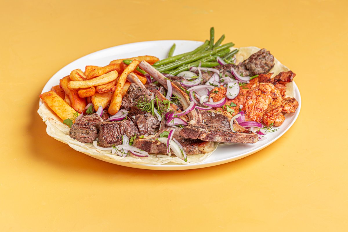 תערובת מיקס פרגית וקבב גאורגי בליווי צ'יפס ושעועית ירוקה. מנה ליחיד