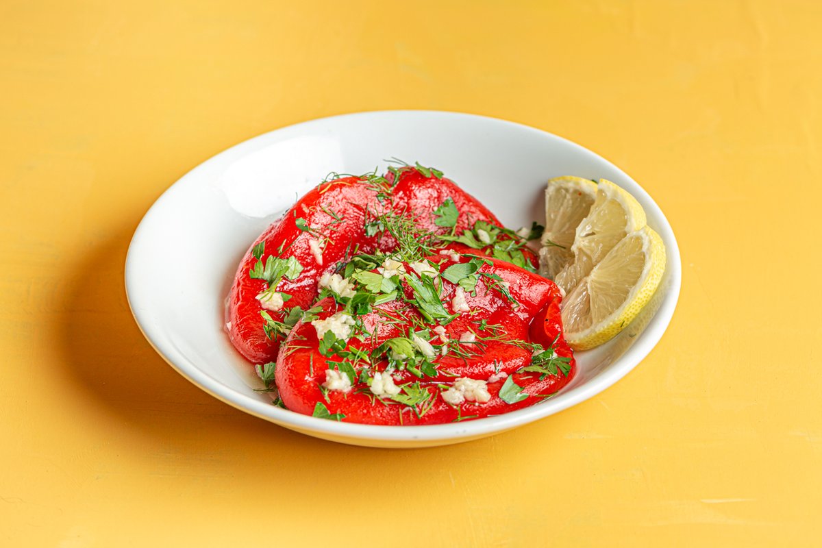 פלפל אדום קלוי ברוטב גאורגי ייחודי המורכב משום ושמיר