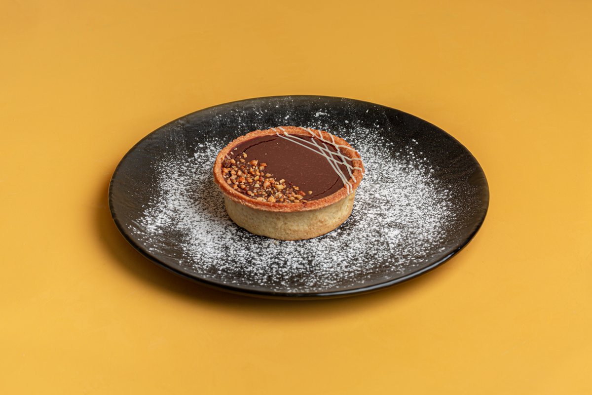 פאי שוקולד בשילוב קרם אגוזים ונוגט בציפוי גנאש שוקולד חלב