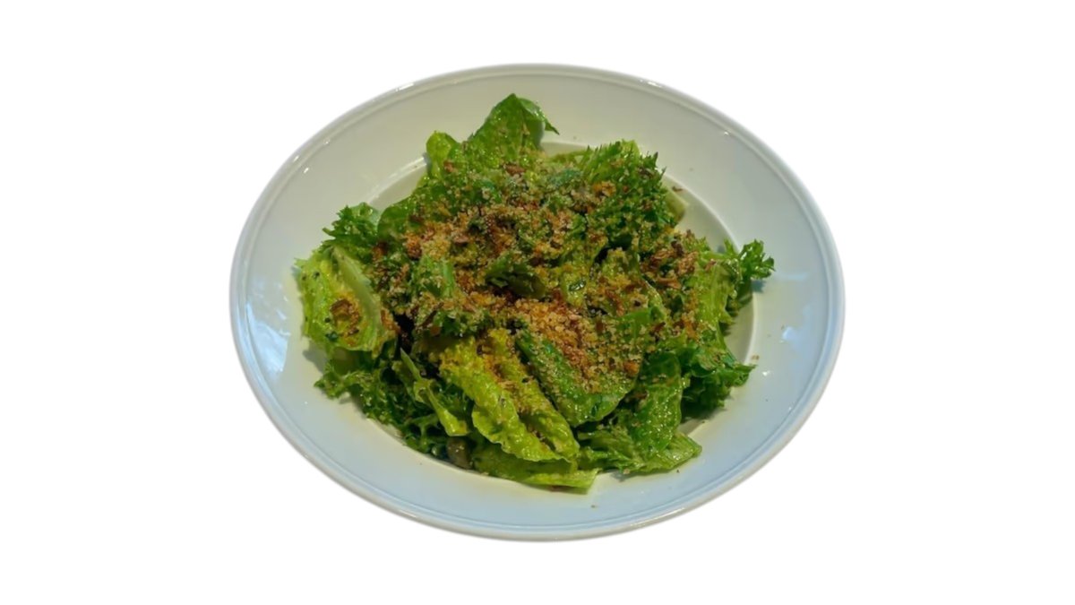 מגוון חסות, זוקיני מאודה, צלפים, קראמבל קרוטונים, רוטב גבינת קפלוטירי