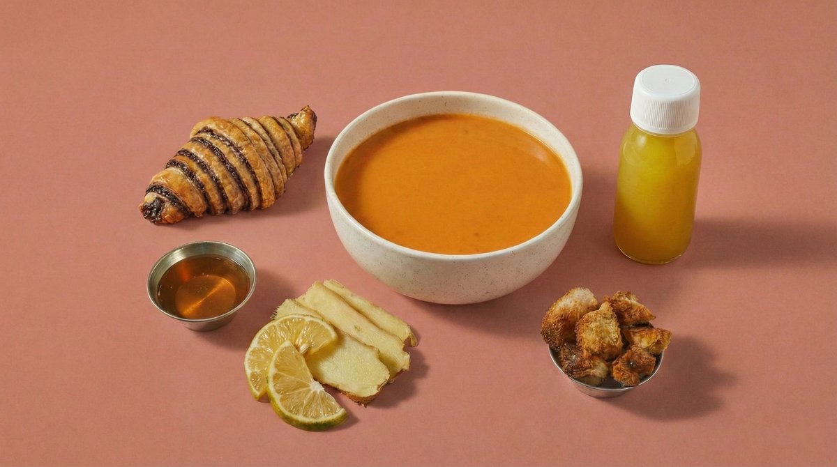 מיקס ירקות כתומים לחורף חם, שמנת, פרמז׳ן קרוטונים בהכנה ביתית או פרוסת חלה לבחירה
