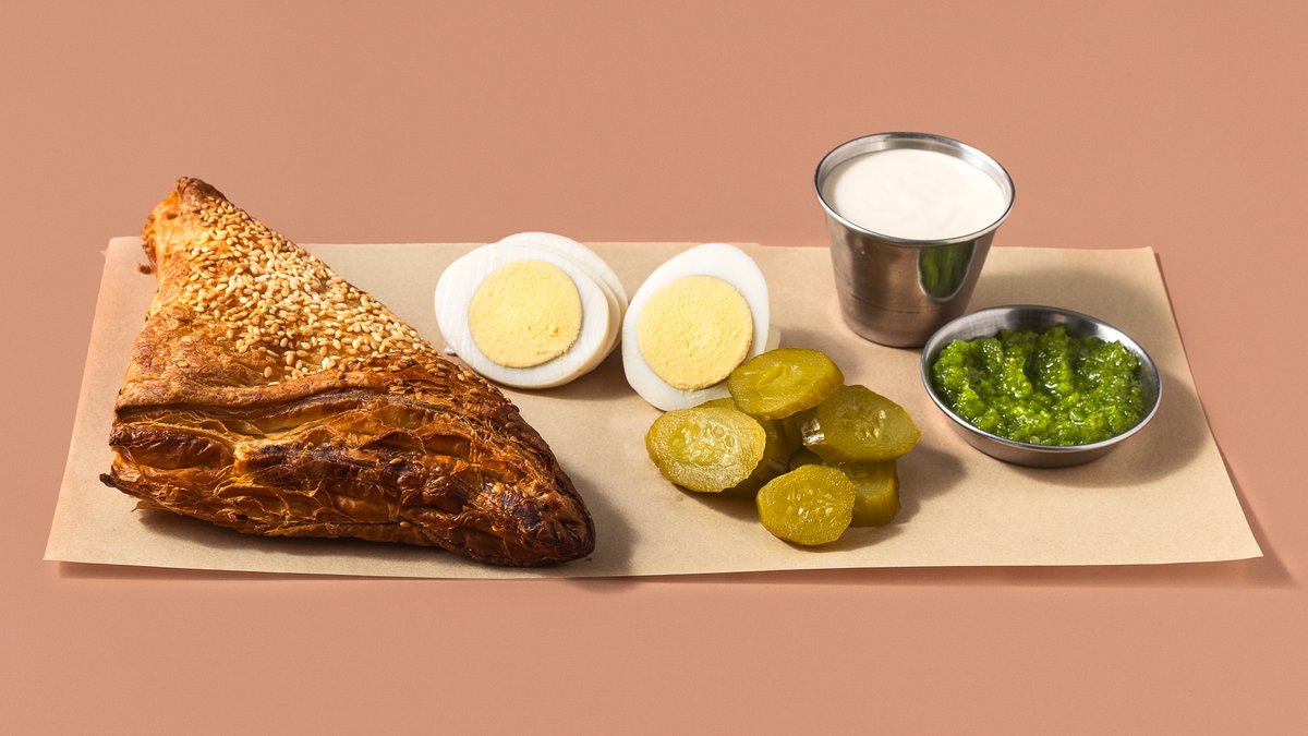 ג׳בטה שאנחנו אופים במקום, גבינת שמנת, חביתה משתי ביצים עם תוספות לבחירה, עגבנייה, חסה