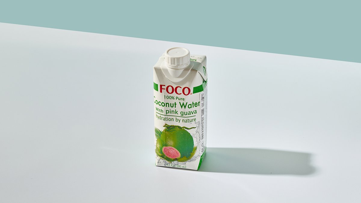 מי קוקוס פוקו בתוספת גויאבה, מיוצר מאגוזי קוקוס טריים, ללא חומרים משמרים וללא תוספות סוכר.